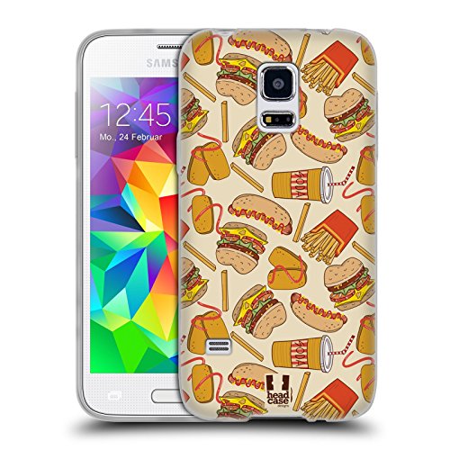Head Case Designs Burger E Patatine Pattern Fast Food Cover Morbida in Gel per Samsung Galaxy S5 Mini