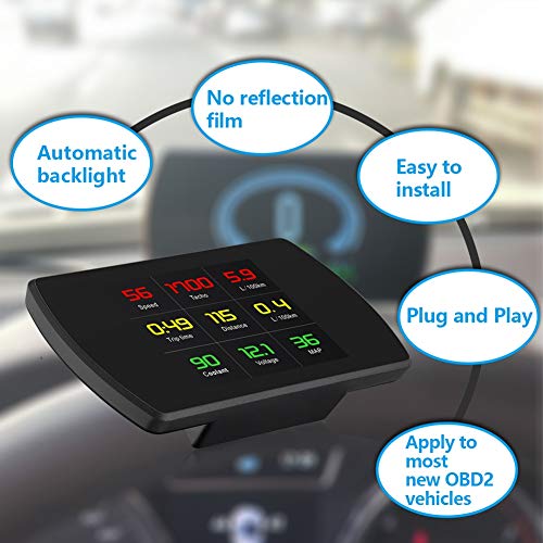 Head-Up Display Con OBD 2 E EUOBD 3 Pollici P12 Smart Head-Up Display Che Mostra I Dati Di Viaggio Velocità Km/H Mph, Avvertimento Di Velocità, Temperatura Dell'acqua, Tensione Della Batteria, Misura Di Chilometraggio