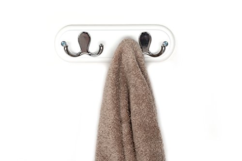 Headbourne Hr4069H - Appendiaccappatoio con 2 ganci doppi su supporto in legno, bianco