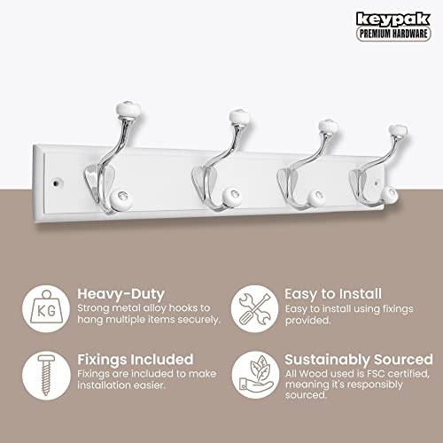 Headbourne Hr4094H - Appendiabiti con 4 ganci resistenti in ceramica, su asta in legno, Bianco