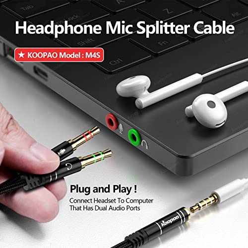 Headphone 3.5mm Splitter Mic Cable for Computer, KOOPAO Headset 3.5mm Female to 2 Dual Male Microphone Audio Stereo Jack E...