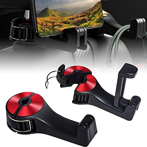 2 In 1 Car Headrest Hidden Hook, Universal Car Back Seat Hook with Phone Holder, 360° Rotazione Auto Seat Hook Hanger Storage Organizer for Bag, Purse, Toys (2 x Red)