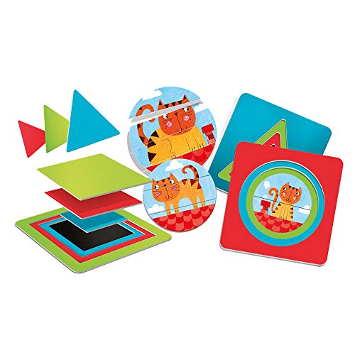 Grazie alle 3 basi-compositoio, i bambini si divertono a seriare le forme e a ricomporre i puzzle progressivi