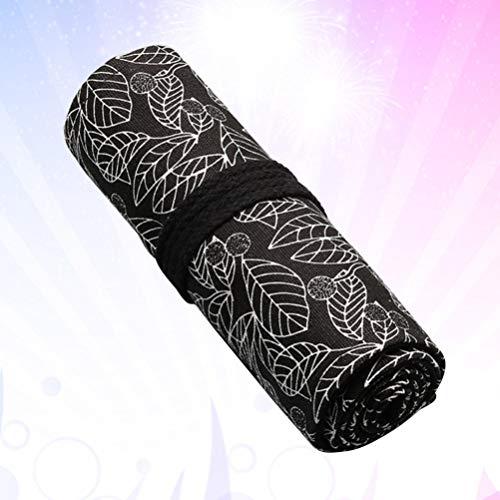 Healifty Astuccio arrotolabile per matite in tela, astuccio per avvolgere rotoli da 48 ???, matite (foglia nera)