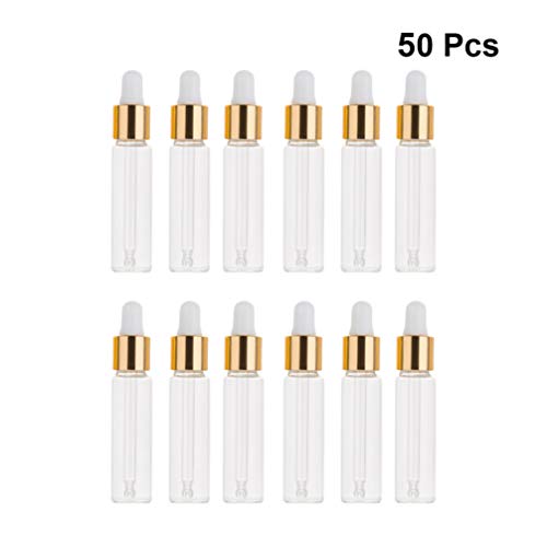 Healifty Bottiglie da 50 Pezzi in Vetro con Dispenser Contagocce in Vetro per Olii Essenziali Profumi Prodotti Chimici da Laboratorio Flaconi per Cosmetici D'oro 5 Ml