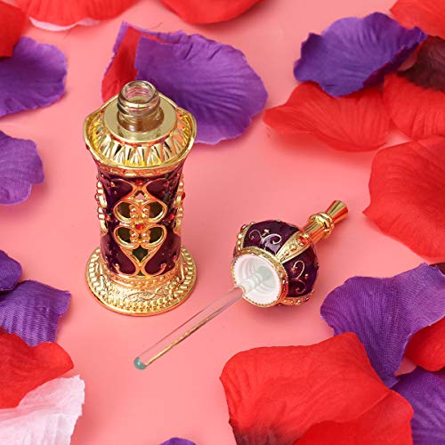Healifty Bottiglie di profumo riutilizzabili vintage stile mediorientale bottiglia di olio essenziale vuota regalo di nozze 12 ml (oro e viola)