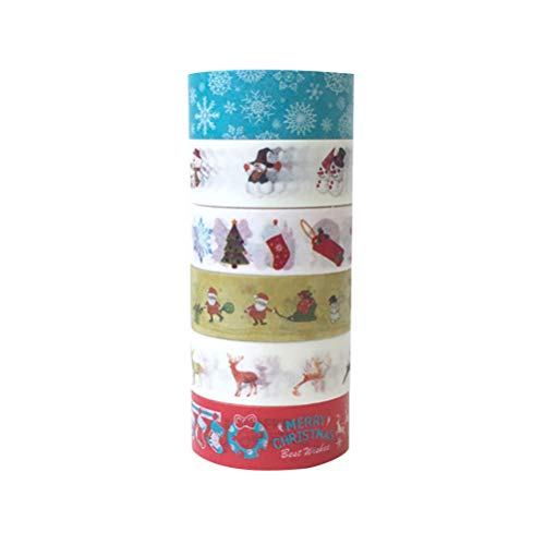 Healifty 6 rotoli di nastri di carta washi set largo nastro adesivo elemento natalizio motivo cartoon adesivi decorativi confezione regalo fascia per fai da te festa di natale bomboniere regali