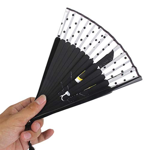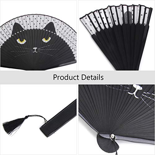 Healifty Ventaglio pieghevole a forma di gatto in seta, per ragazze e signore, 1 pezzo (nero)