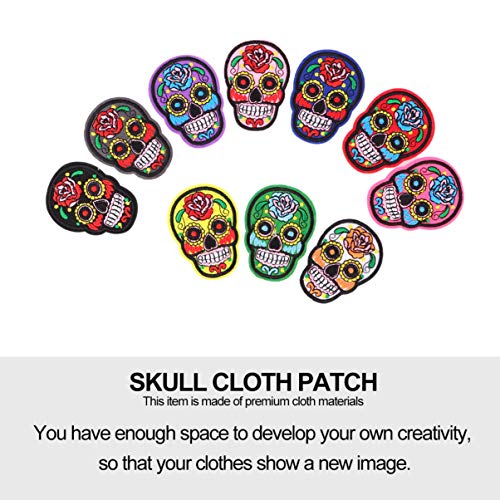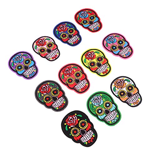 HEALLILY 11Pcs Suger Patch Teschio Ferro su Patch Ricamato Cucire su Patch Applique Dia de Los Muertos Bomboniere Messicano Il Giorno dei Morti
