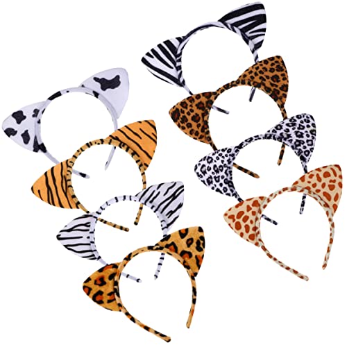 HEALLILY - Set di 8 fasce per orecchie di gatto, con stampa leopardata, per orecchie di gattino, accessorio per capelli, accessorio per feste, cosplay, costume da ballo