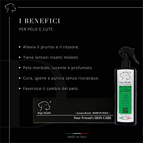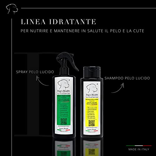 Dog's Health - Spray Pelo Lucido 500ml - shampoo secco per cani con OLIO DI NEEM per cani e ALOE VERA che lo rende anche uno shampoo antiparassitario per cani, 100% Organico Vegetale Senza OGM
