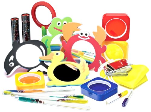 Contiene prismi, lenti di ingrandimento, forme colorate e specchi.