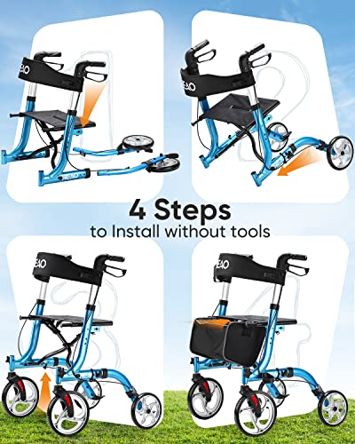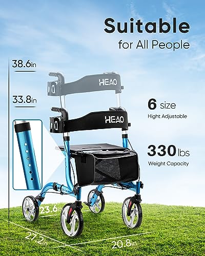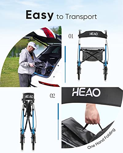 HEAO Rollator Walker per anziani con sedile, Rollator pieghevole con portabevande e schienale, ruote da 25,4 cm, blu