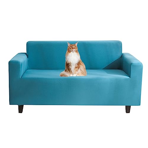 Hearda Copridivano 1/2/3/4 posti, Elasticizzato Copridivano con Braccioli, Lavabile Spandex Antiscivolo Fodera Divano Protettiva per Soggiorno Bambino Gatti Cani (3 Posti,Blu Lago)