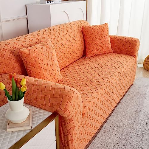 Hearda Copridivano 1/2/3/4 posti, Jacquard Elasticizzato Copridivano con Braccioli, Lavabile Spandex Antiscivolo Fodera Divano Protettiva per Soggiorno Bambino Gatti Cani (4-Seater,Arancione)