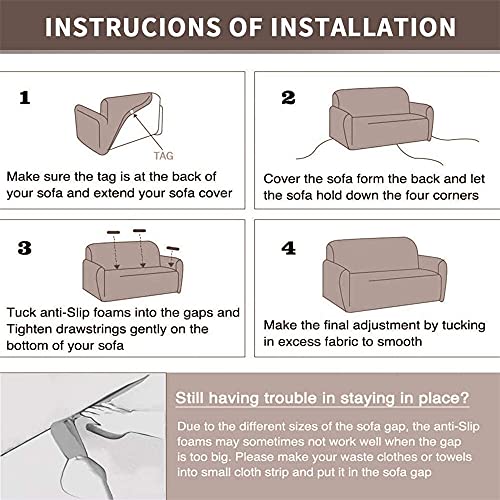 Facile da installare e mantenere:Seguire le istruzioni di installazione mostrate nell'immagine e l'installazione del fodere copridivano universale procederà senza intoppi. Lavare a mano o in lavatrice, non usare candeggina e lavare con lo stesso colore / simile.