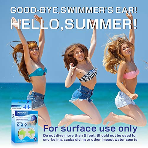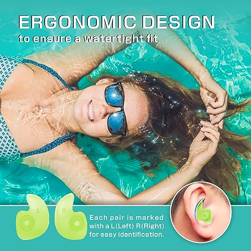 Hearprotek Tappi per Le Orecchie da Nuoto, 2 Paia di Tappi Auricolari in Silicone riutilizzabili per nuotatori, Bagno, Doccia e Altri Sport Acquatici (Verde)
