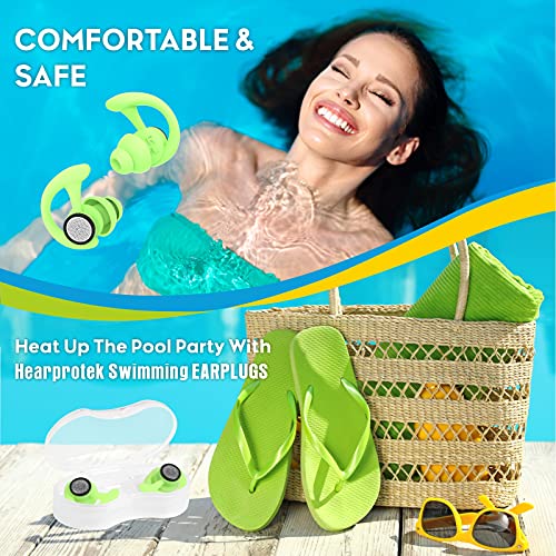 Hearprotek Tappi per Le Orecchie per Nuoto, 2 Paia Riutilizzabili Tappi per Le Orecchie per Acqua da Nuoto su Misura Adulti per Nuotatori Doccia Piscina Bagno Surf Kayak(Verde)