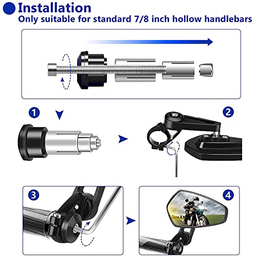 【Facile da installare】: Adatto solo per specchietto moto manubri cavi standard da 7/8". Per manubri con estremità filettate, avvitare semplicemente i bulloni nei fori. Alcuni modelli potrebbero richiedere piccole modifiche all'installazione. Dimensioni dello specchio: 4,4 x 2,4 pollici / 11,2 x 6 cm (perché lo misuro da solo, si prega di consentire una differenza di 1-2 mm).