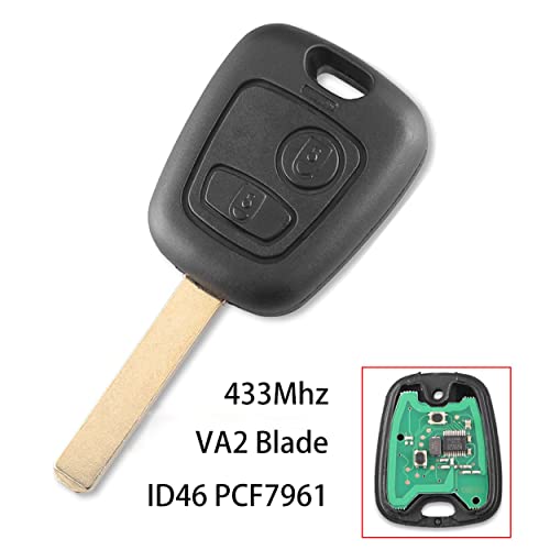 Heart Horse 2 pulsanti 433 MHz Telecomandi per Auto, Guscio Chiave Telecomando per Citroen C1 C2 C3 Xsara/Peugeot 307 con chip ID46 e lama VA2
