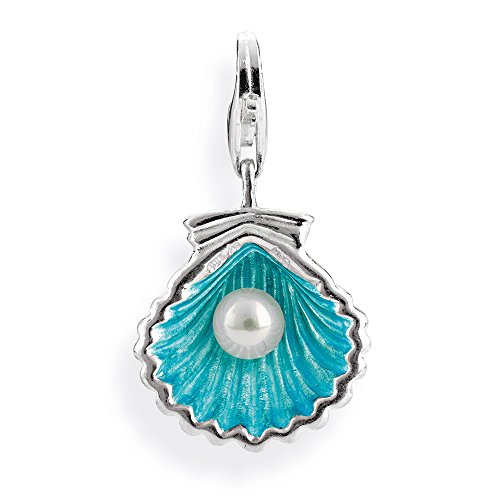 Heartbreaker - Charm con la conchiglia e perla nella parte interna e moschettone in vero argento | collezione Sealife | pendente blu d'argento sterling 925 | per donne | LD MX 22