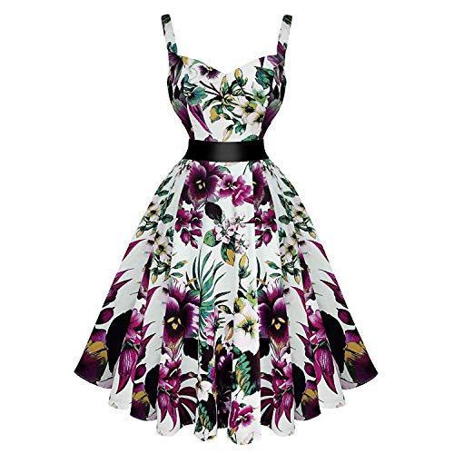 Hearts And Roses London Bella Viola Floreale 1950s Vintage da Tè Abito