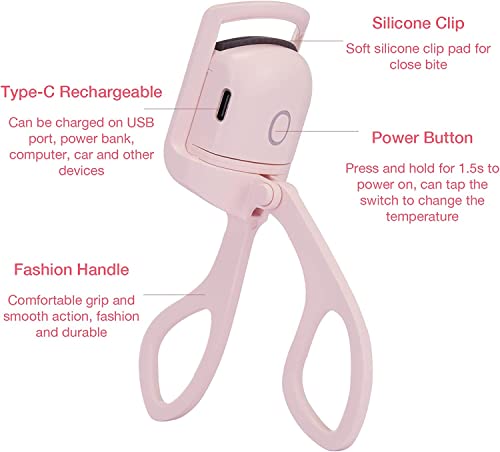 Heated Eyelash Curler - Electric Eyelash Curlers, USB Rechargeable Eye Lash Curler with Comb, 2 Heating Modes Quick Natural Curling Eye Lashes for Long Lasting (Pink)