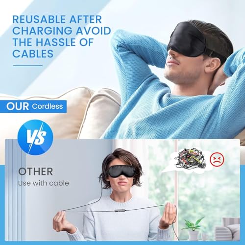 Heated Eye Mask Cordless, USB Eyes Heating Pad, Eye Massager Mask for Sleeping, Electric Warm Eye Compress for Dry Eyes, Relief Stye, Blefarite, Chalazion, Sleep Mask Gift for Men Women(Black)