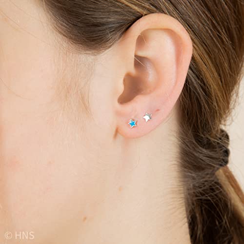Heather Needham Silver - Orecchini a perno in argento sterling, con stella smaltata colore turchese, dimensioni: 3 mm Confezione regalo inclusa.
