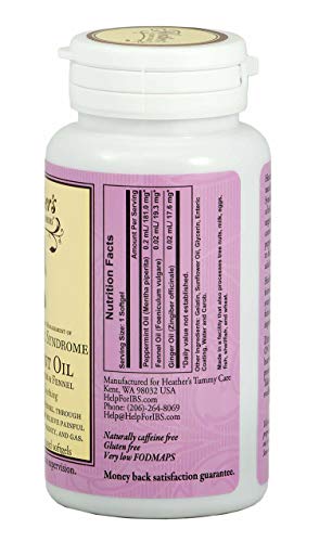 Pancia di Heather, capsule di olio di menta piperita sono un cibo per il regime alimentare i sintomi della sindrome del colon irritabile. Gli studi clinici hanno dimostrato che, come parte della dieta: menta piperita allevia dolori addominali, diarrea, finocchio e urgenza;