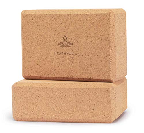 Heathyoga - Blocco per Yoga (2 Pezzi) e Cinghie per Yoga, Blocco in Schiuma Eva ad Alta densità per sostenere e Migliorare Le Posizioni e la flessibilità, Cork