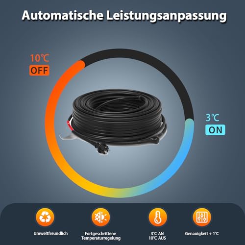 Preassemblato, facile da installare. Include spina messa a terra con luce, termostato integrato e istruzioni (lingua italiana non garantita). Facile da installare e utilizzare. 230 Volt, 17 Watt/m. Termostato integrato per accendere e spegnere il cavo 3 ℃. Utilizzare solo 3 Ampere o meno corrente. Risparmio energetico. 100% setaccio con pellicola di alluminio e rete di rame stagnato.