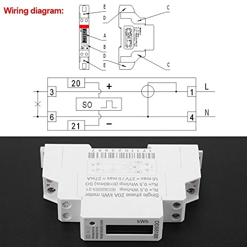 Heayzoki LCD Digitale 220V monofase su Guida DIN 5-20A contatore elettronico di KWh di energia, contatore Elettrico su Guida DIN ad Alta stabilità, Anti furto di elettricità e Lunga Durata.