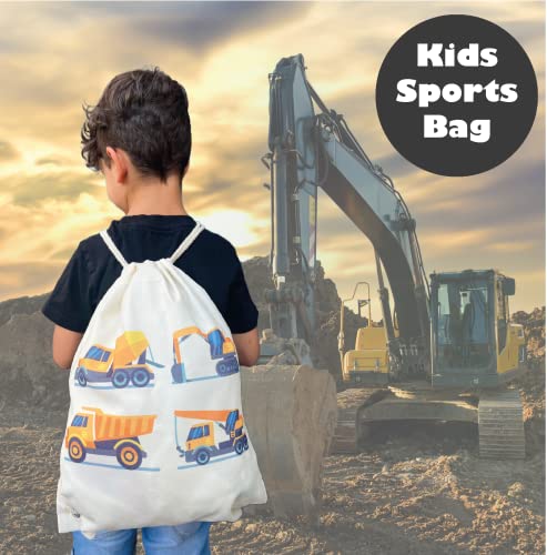 HECKBO Sacca per Bambini, Ragazzi - Sfondo beige - 40x32cm - Motivo con Mezzi da Lavoro - Asilo, Scuola Materna, Gita, Sport - Zaino, Sacca per il Tempo Libero, Sacca da Ginnastica, Sacca per Scarpe