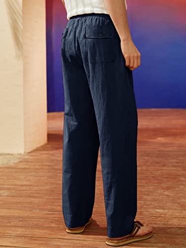 Heekpek Pantaloni Uomo Lino e Cotone Pantaloni Lunghi Dritti da Uomo Estivi Leggeri e Traspiranti Casual Pantalone Lino Uomo con Comodo Cordoncino, Blu Navy, M