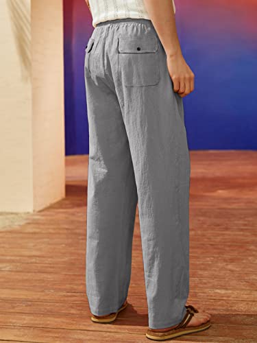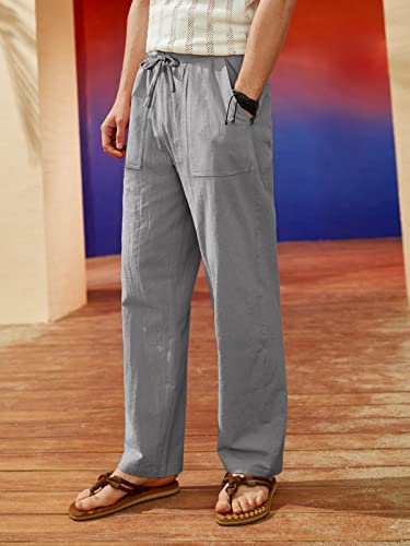 Heekpek Pantaloni Uomo Lino e Cotone Pantaloni Lunghi Dritti da Uomo Estivi Leggeri e Traspiranti Casual Pantalone Lino Uomo con Comodo Cordoncino, Grigio Chiaro, XXL
