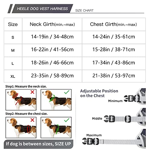 HEELE Pettorina Cane, Imbracatura Sganciata Rapido dal Collo, Pettorina Anti-tiro Riflettente e Regolabile con Maniglia Comoda, Morbida e Imbottita per Cani Piccola Media Grande, Mimetico Grigio L