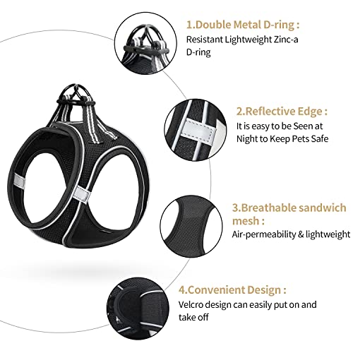 HEELE Pettorina per Cani di Piccola Taglia, Imbracatura per Cuccioli in Rete Morbida Leggera e Traspirante Riflettente Anti-fuga per Camminare Attività all'aperto, Nero, S