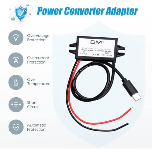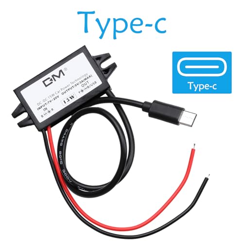 Heemol Adattatore USB da 12V a USB, adattatore USB da 12V a 5V 3A 15W DC Buck Converter Adattatore da CC a DC (Typ C)