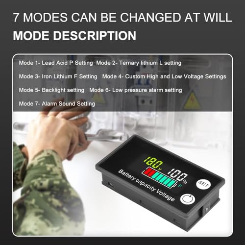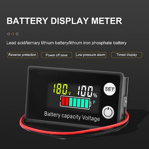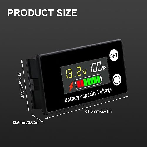 Heemol Battery Capacity Monitor 12V 24V 36V 48V 60V 72V 84V Battery Meter Multifunctional DC8-100V LCD Battery Level Voltage with Temperature Sensor Alarm for Cars Boats Motorhome.
