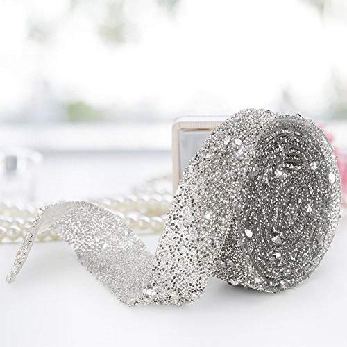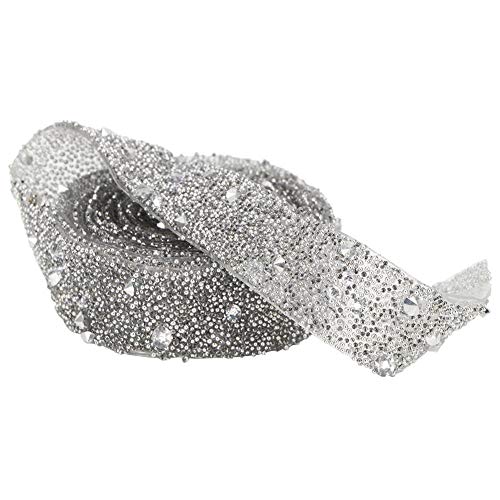 HEEPDD 1 Cortile Nastro di Strass di Cristallo, Nastro Strass Sparkle Diamond Wrap Roll per Decorazione Collare Clip di Capelli Applique Cinghia Vestiti Promenade(Silver)