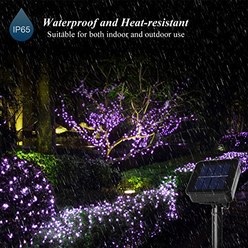 Heepow Luci Stringa Solare (100LED, 3 Fili, 39ft / 12M, 8 Modalità), Catene Luminose Solari Impermeabili, Filo di Rame Solare per Esterno/Interno, Giardino, Casa, Feste e Camera (viola)