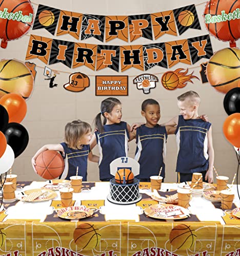 Hegbolke Decorazione per la Festa del Cestino- Compreso Set di 4 Palloncini da Basket, Piatti, Tazze, tovaglioli, turbinii appesi, striscioni e Palloncini - per 20 Persone