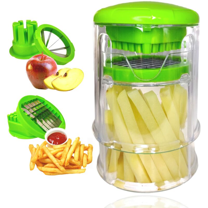Semplice da usare Basta inserire la patata all'interno sulla lama di frittura, quindi spingere il cilindro superiore verso il basso, otterrai patatine fatte in casa sottili, croccanti e deliziose. Molto pratico per preparare macedonie di verdure o frutta in pochi minuti, affettatrice tritatutto per mela arancia limone pomodoro cetriolo cipolla... ecc, Ideale per il benessere e la perdita di peso. Questo dispositivo ergonomico è realizzato in plastica atossica di qualità mentre le lame sono in acciaio inossidabile 420 affilato e robusto, offrendo un taglio duro senza ruggine o rotture. facile da pulire e lavabile in lavastoviglie. Affetta qualsiasi mela in fettine perfette, ideale per le tue merende o i pranzi dei bambini, è l'accessorio da cucina che ti incoraggia a non perdere mai la tua mela al giorno per allontanare il medico.