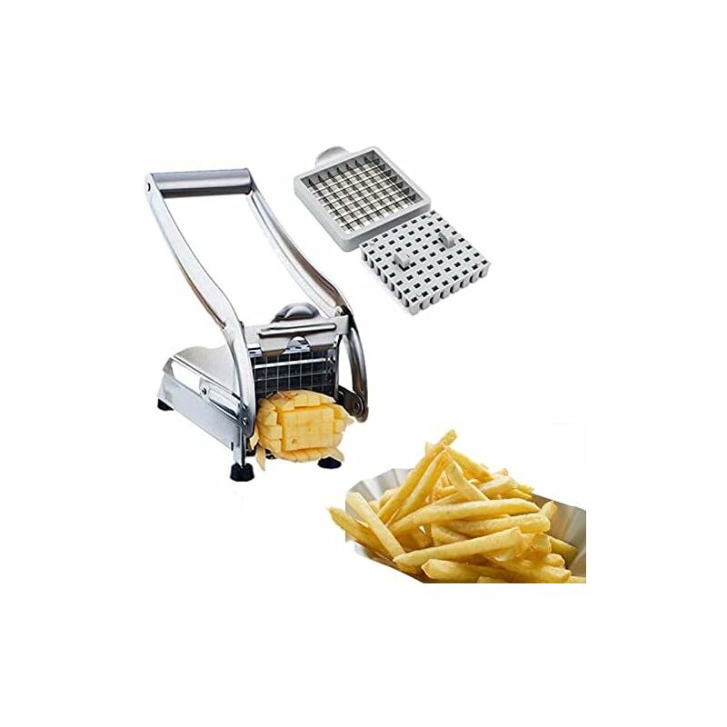 TAGLIO IN SECONDI - Taglia in modo rapido, sicuro e semplice qualsiasi frutta o verdura dura in patatine fritte - basta aggiungere le verdure e premere delicatamente la leva Con 2 lame per affetta patate - Affetta patate e altre verdure in modo facile e veloce con il due lame intercambiabili in acciaio inossidabile incluse. Resistente e compatto - nessuna parte in plastica può rompersi. Realizzato in acciaio inossidabile di qualità professionale per anni di utilizzo. Le lame intercambiabili possono essere inserite solo in un modo per evitare danni. Il design compatto occupa uno spazio minimo in cucina. Per impieghi gravosi -- Macchina per friggere in plastica e acciaio inossidabile con leva liscia e base a ventosa per un uso sicuro e antiscivolo FACILE DA USARE - Prepara patatine fritte e verdure facilmente. La base è dotata di una forte tecnologia di bloccaggio a ventosa, gambe robuste e piedini antiscivolo, oltre a un paraurti ribaltabile che ti consente di applicare forza a un