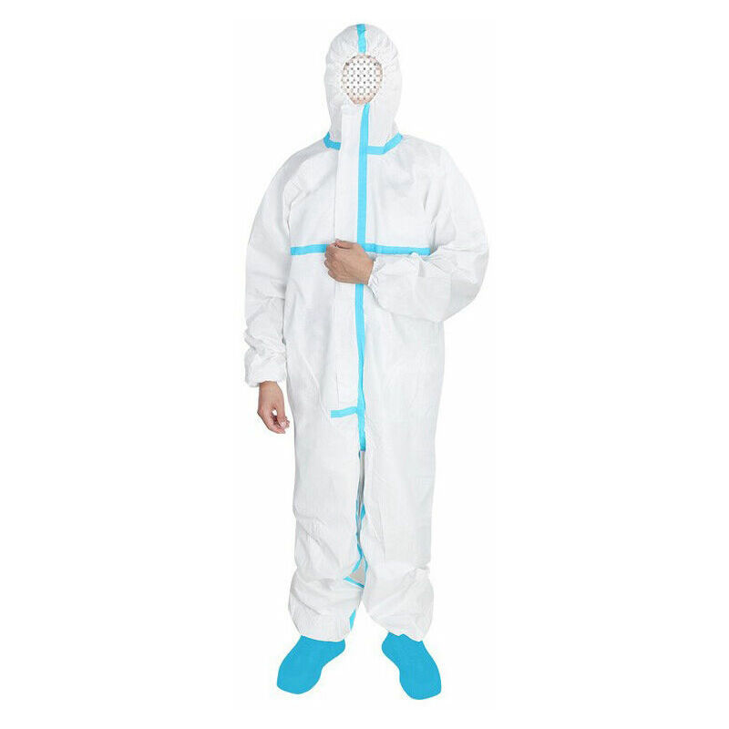 Polietilene, non tessuto Realizzato in tessuto non tessuto di polietilene ad alta densità per resistenza e comfort. Questa tuta usa e getta è rivestita in polietilene per un'eccellente protezione contro particelle e liquidi multipli Cucire le cuciture, quindi sigillare con nastro termoattivato. Presenta una resistenza all'acqua di 3000 mm/24 ore per una maggiore protezione dai fluidi Lo strato traspirante microporoso aumenta la trasmissione del vapore e il flusso di umidità 39;
