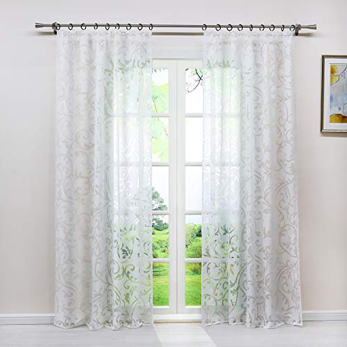 Heichkell, tenda in voile con fettuccia arricciata, trasparente, dal design dévoré, per il soggiorno, 1 pezzo, (base x altezza) 140 x 245 cm, in bianco
