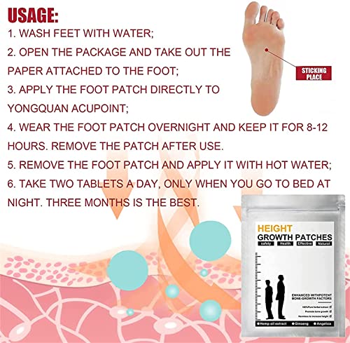 Patch per la crescita dell'altezza: secondo le conoscenze mediche cinesi, il corpo umano ha oltre 360 punti di agopuntura, di cui oltre 60 sono sulla pianta dei piedi. HeightenUP Agopuntura Slimulating Foot Patch stimola la secrezione del corpo di ormone della crescita stimolando i punti di agopuntura sulle suole dei piedi ogni notte, favorendo così la crescita dell'altezza.