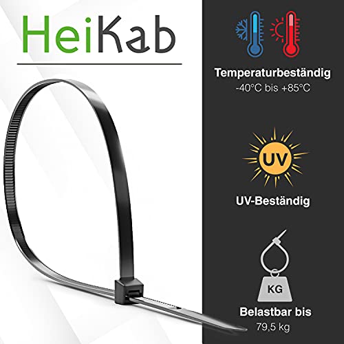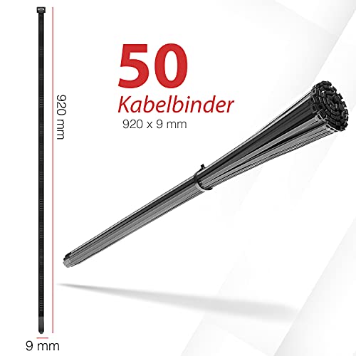HeiKab 50 Fascette di cablaggio (LxP) 912 x 9 mm - Resistente ai raggi UV - Resistenza minima alla trazione 780N/79,5 kg - Nero