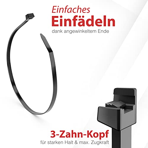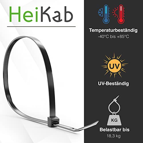 HeiKab 100 Fascette di cablaggio (LxP) 300 x 3,6 mm - Resistente ai raggi UV - Resistenza minima alla trazione 180N/18,3 kg - Nero